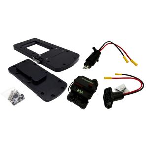 Komplektis alumiiniumist kiirkinnitusalus, toitepaigalduskomplekt ja 60A automaatkaitse